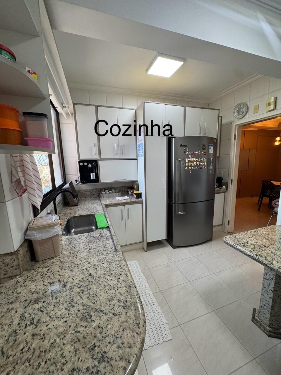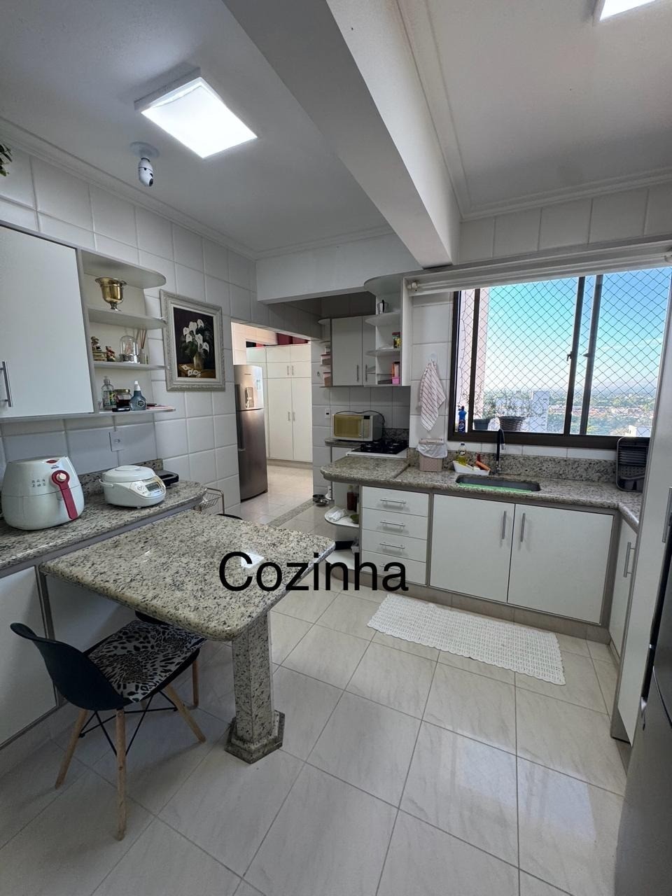 - COZINHA grande bem planejada, com bancadas em mármores, armários planejados e tela de proteção na janela;