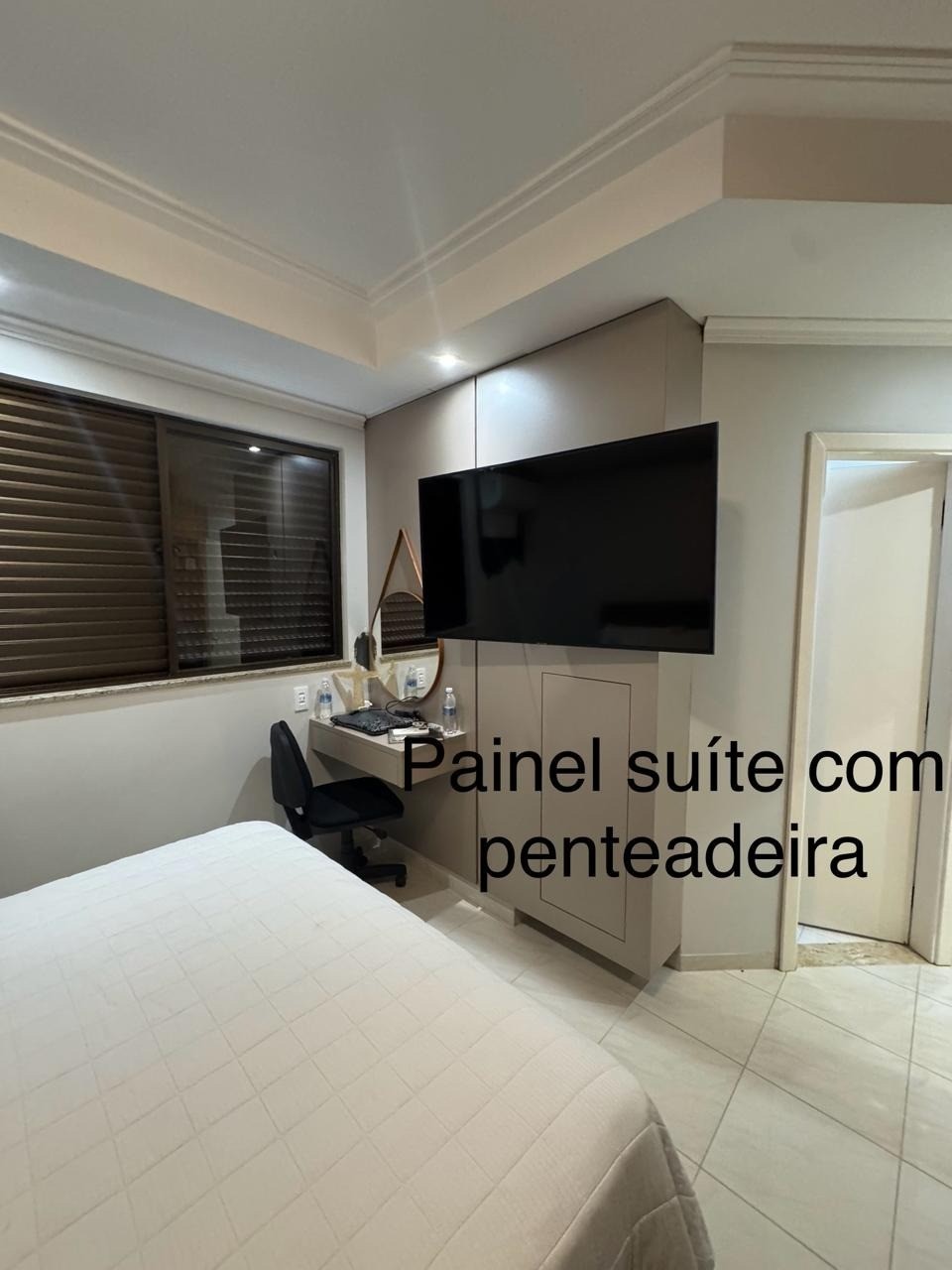- Suíte com armários planejados, painel e penteadeira, guarda roupa na suíte, e o melhor, uma linda banheira de massagem para relaxar na hora que desejar;