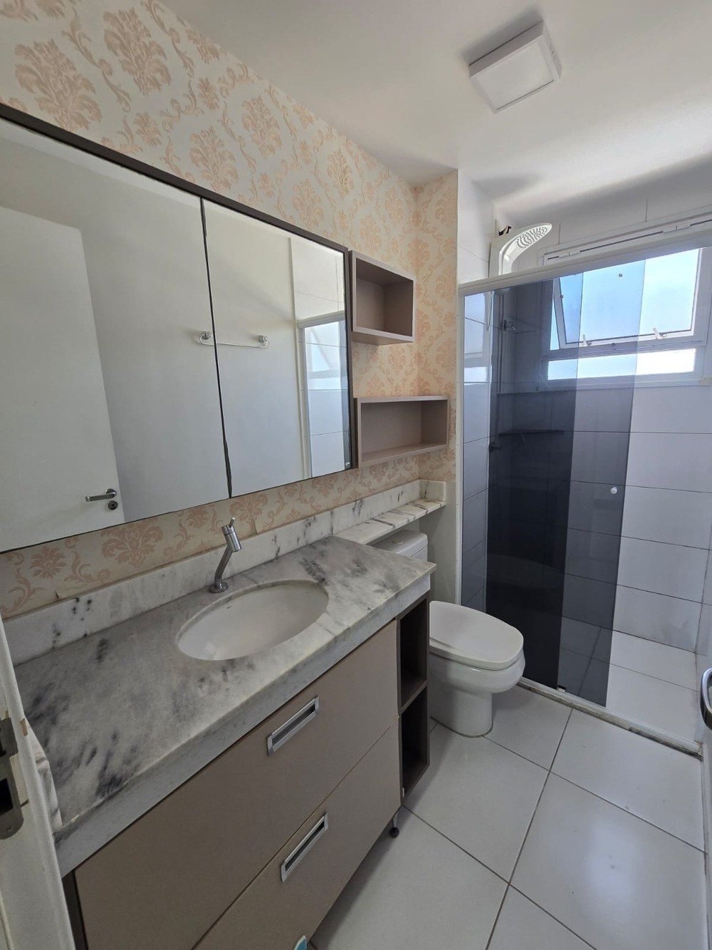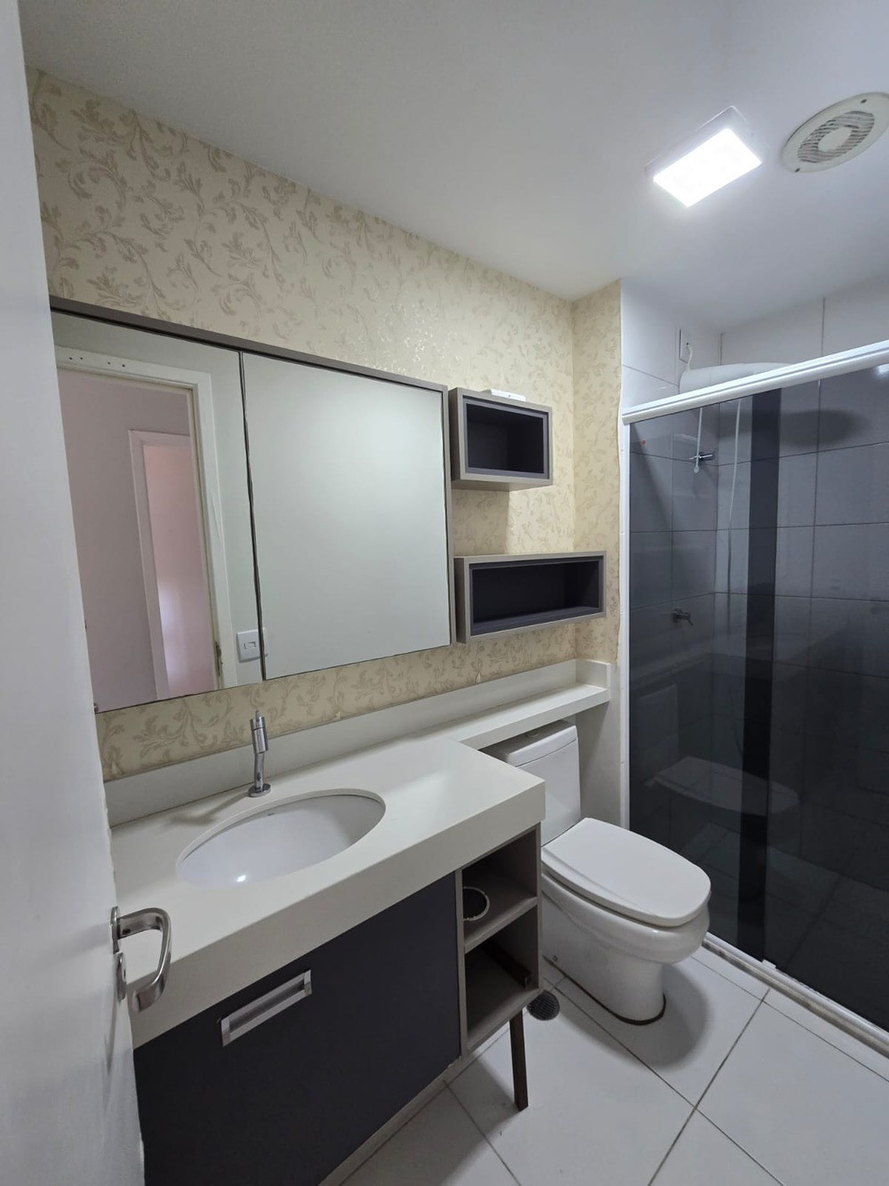 - Banheiros com armários, box e espelho.