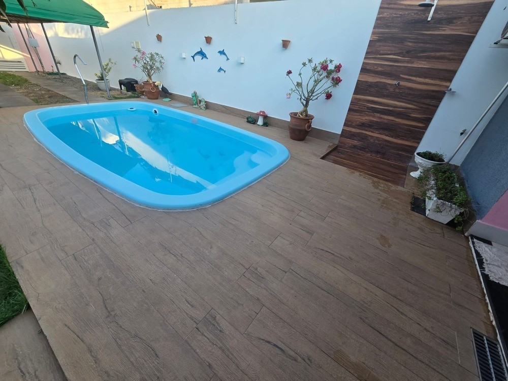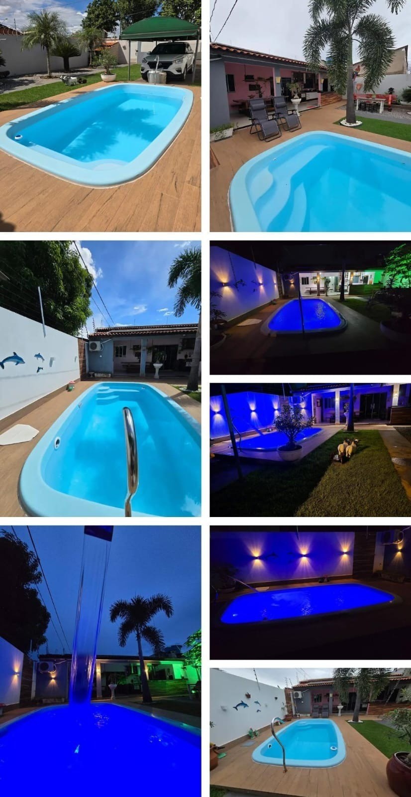 - Piscina com cascata, hidromassagem e led azul; duas espreguiçadeira;