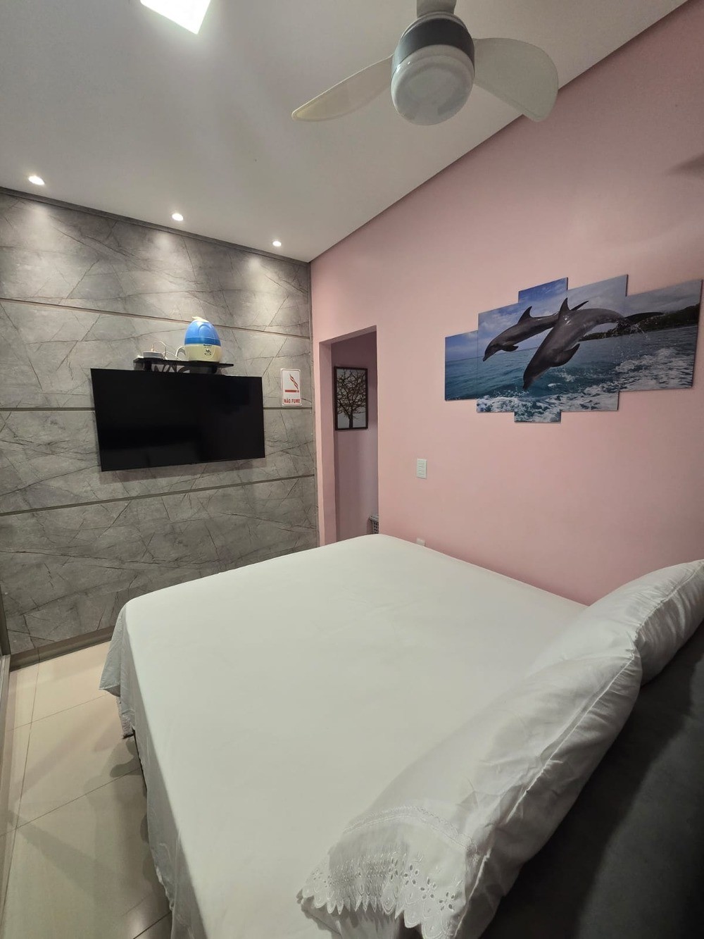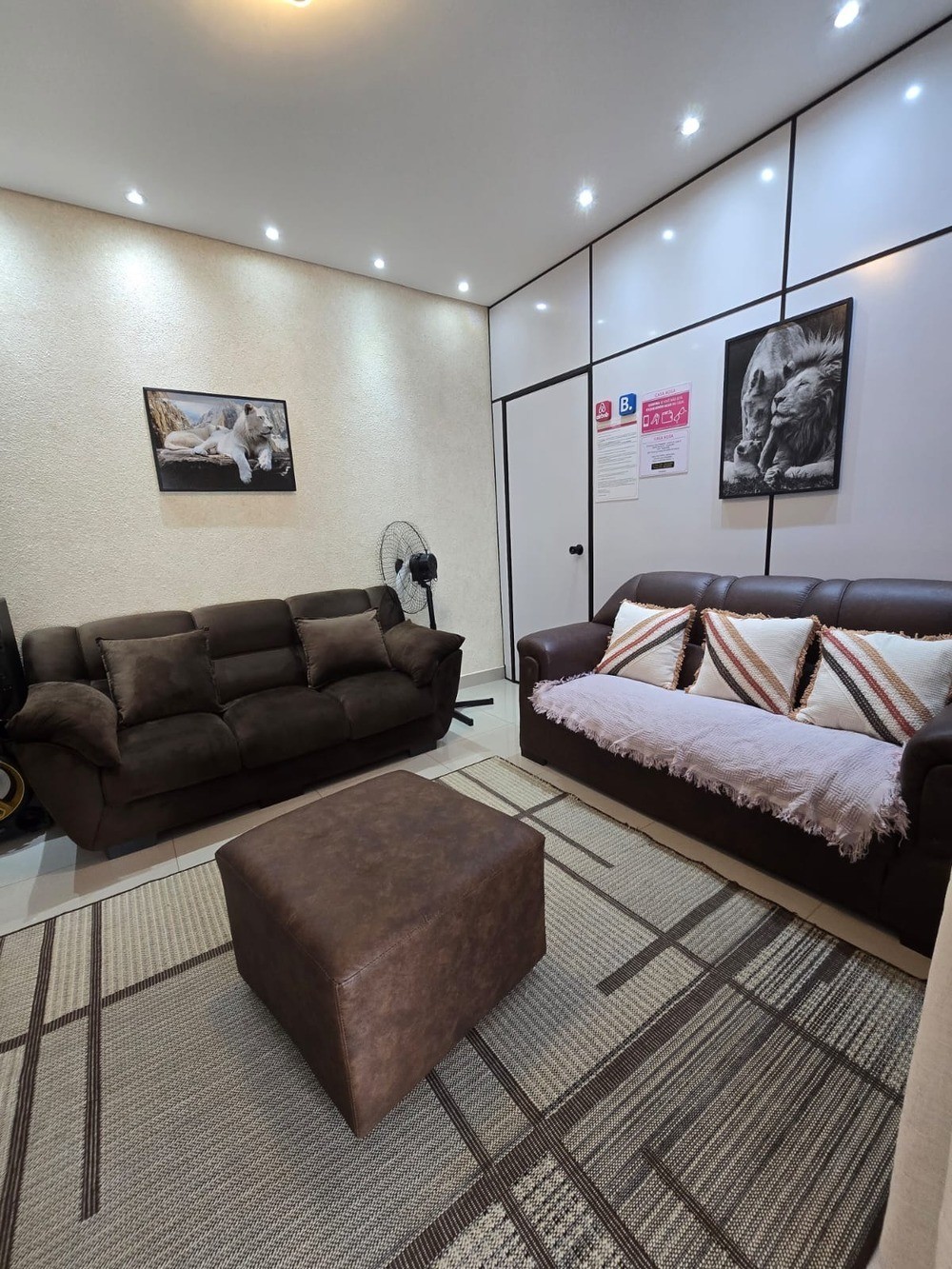- Sala de descanso: tv smarth, aparelho de som, sofás, cortina, tapetes;