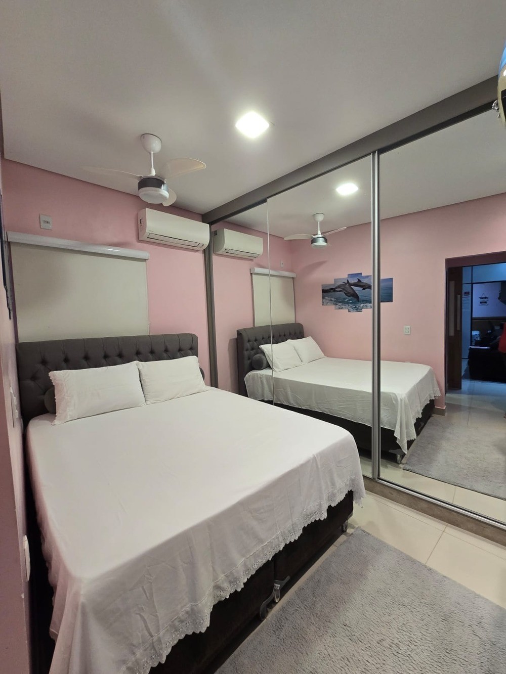 - 2 quartos, sendo 1 suíte; todos com armários planejados, camas muito boa, oferecemos enxoval cama e banho e cobertores travesseiros completo, tv smarth 50 polegadas Samsung nos quartos e sala, ar condicionados split inverter silencioso, cortinas persianas nas janelas e sala, tapetes;