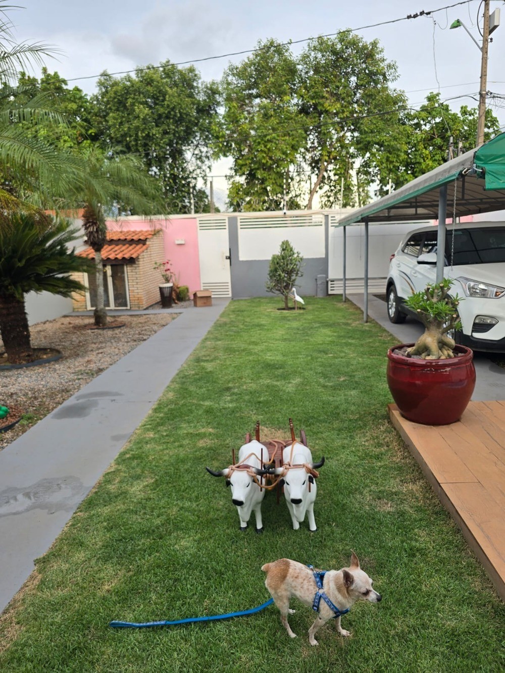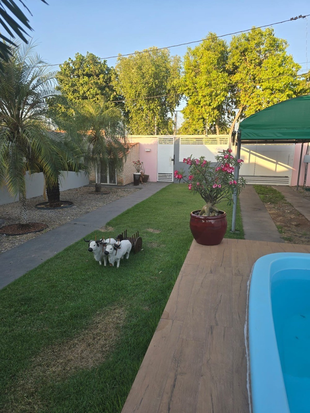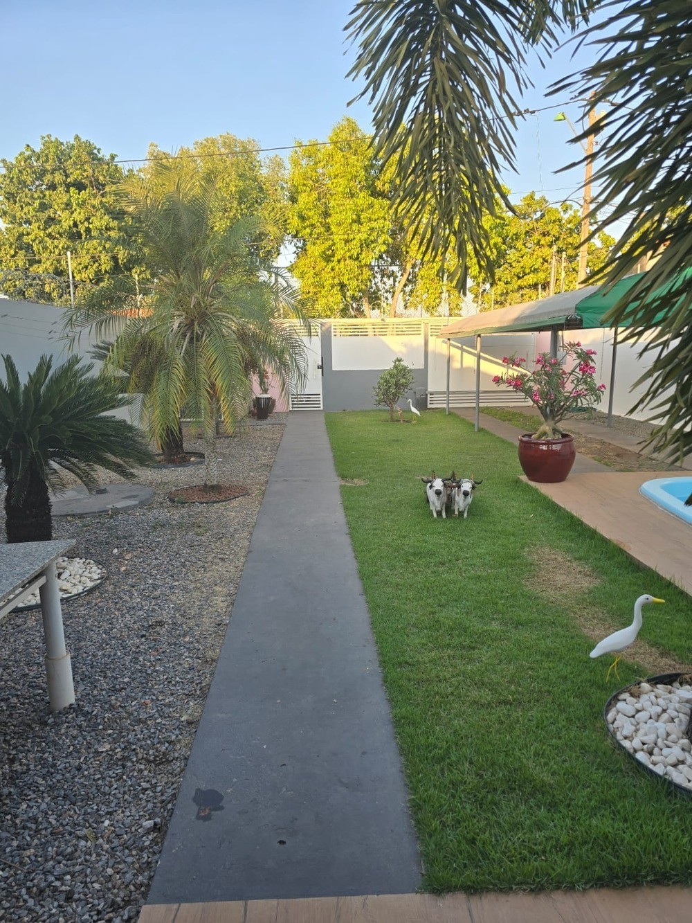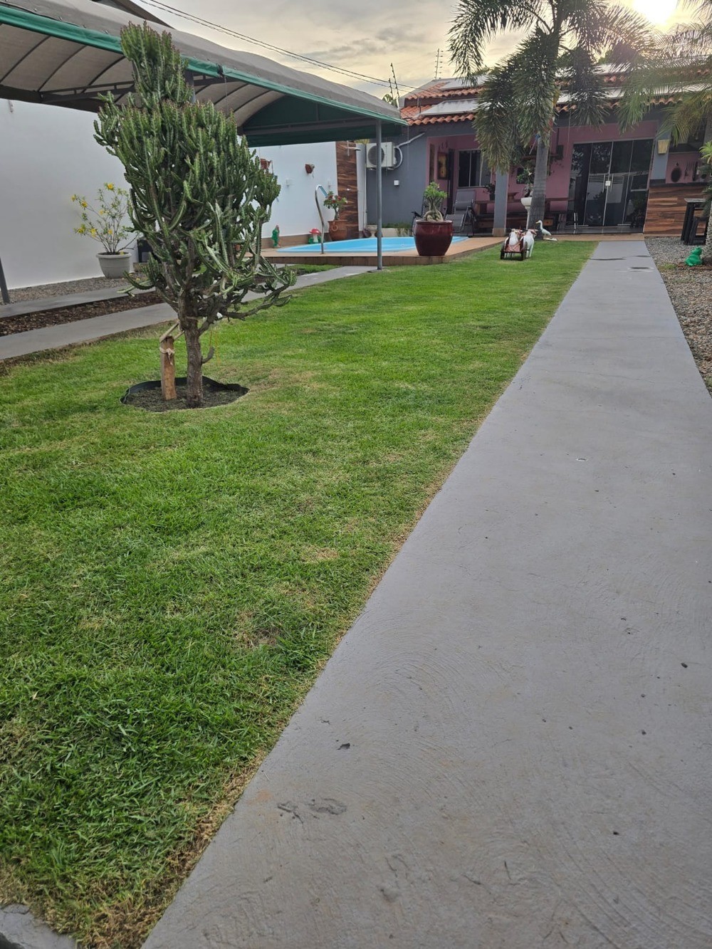 - Quintal espaçoso; paisagismo, grama, parte pedra drenante;