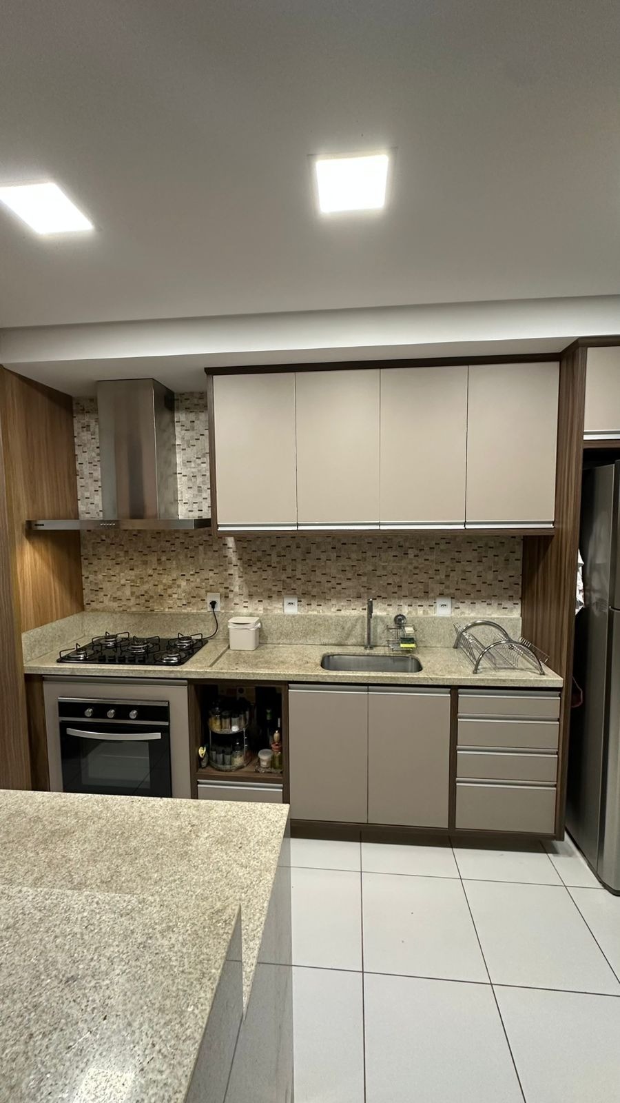 🧺 Lavanderia e cozinha com bancadas em mármore;