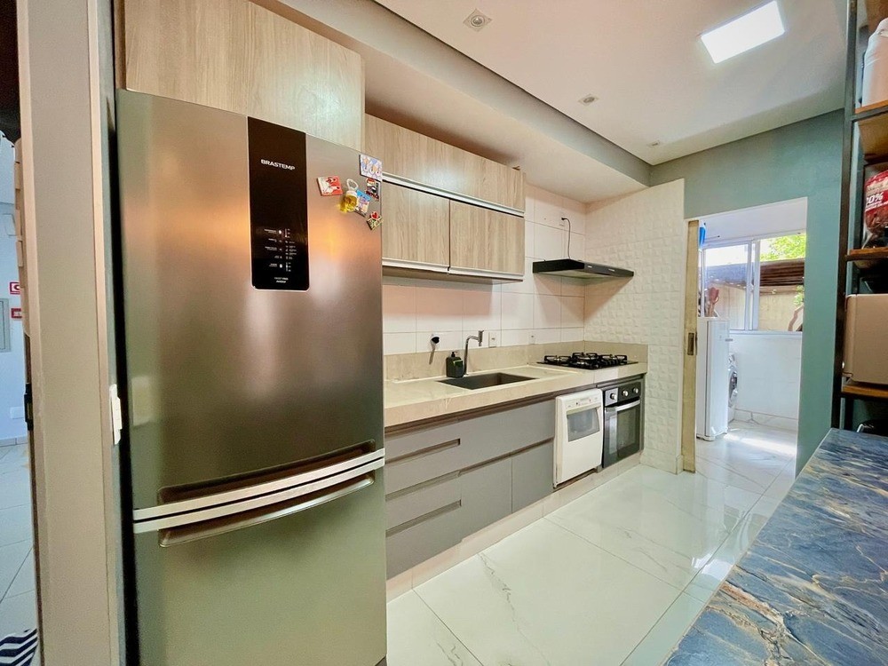 - Apartamento com benfeitorias gesso rebaixado, iluminação moderna, porcelanato na cozinha, área de serviço e sala + Hall.