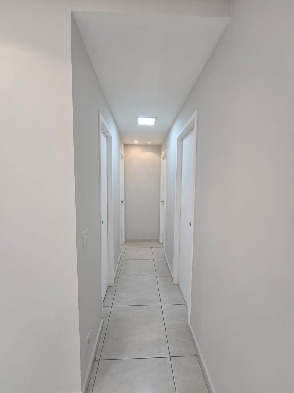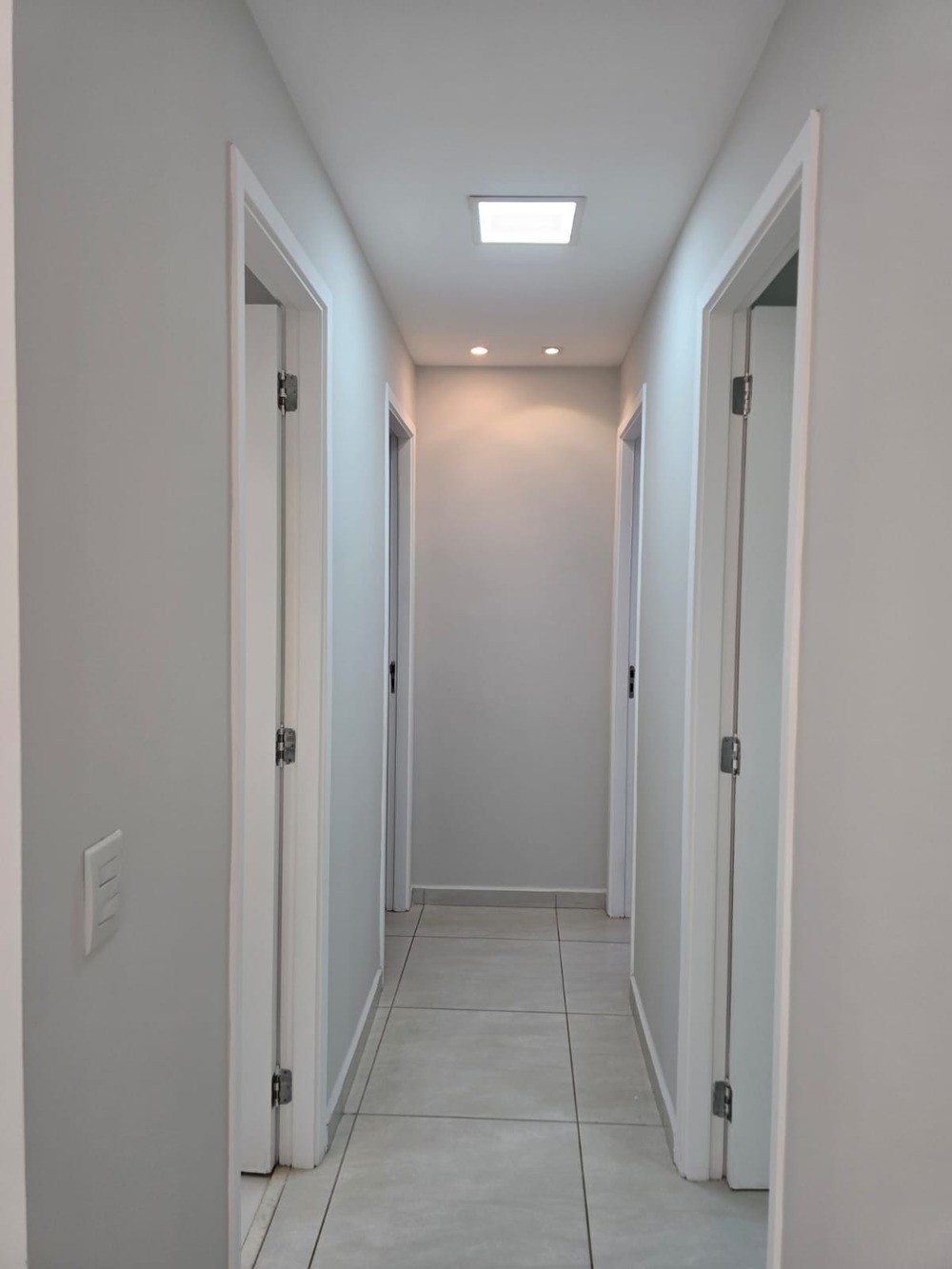 Apartamento de três quartos sendo uma suíte, com armários planejados na cozinha, sala, suíte, banheiros, e quartos.